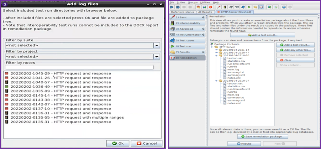 Yapılan testlerin sonucu, test çalıştırma günlükleri, test paketi ayarları bir “Düzeltme (Remediation) Paketi”nde toplanarak raporlanabilir. Böylece, bir test mühendisi, bulunan sorunları yeniden üretmek isteyen herkese dağıtabilir. Bulunan sorunları yeniden üretebilmek son derece önemlidir. Genellikle, bulunan sorunları düzelten kişiler, ilk test çalıştırmalarını yapan kişilerden farklıdır. Test mühendisleri Defensics ile testler çalıştırıp hatalar bulduklarında, bulunan sorunları nasıl yeniden üretecekleri konusunda bir sonraki kişiye tüm ayrıntıları verebilmelidirler.