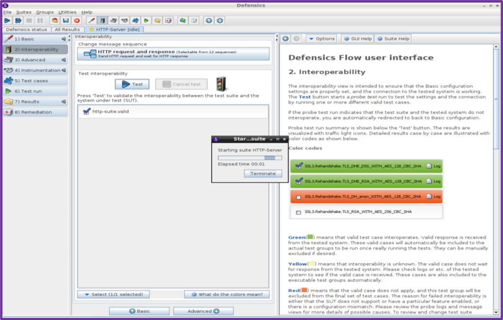 Defensics testine başlarken, hedef sisteminize uygun ayarları yapılmalıdır. Sonrasında birlikte çalışabilirlik testini çalıştırılır. Her şey hazır olduğunda, test senaryoları için hangi seçeneklere sahip olduğunuzu kontrol edebilirsiniz.